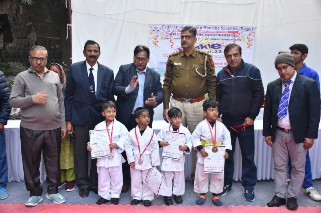 दिल्ली: फेडरेशन ऑफ ग्रुप हाउसिंग सोसाइटीज (पंजीकृत), आई.पी. विस्तार। रविवार, 22 जनवरी 2023 को किरपाल अपार्टमेंट्स, आई पी एक्सटेंशन में इंटर सोसायटी स्पोर्ट्स टूर्नामेंट जूडो कराटे प्रतियोगिता आयोजित की गई। समारोह में विभिन्न सोसायटी के 250 से अधिक बच्चों और उनके माता-पिता ने भाग लिया। प्रतिभागियों को उनके शरीर के वजन के अनुसार अलग-अलग समूहों में बांटा गया। प्रतियोगिता सुबह 10 बजे से शुरू होकर दोपहर 3 बजे तक चली। इसके बाद सभी प्रतिभागी और उनके माता-पिता पुरस्कार समारोह के लिए एकत्र हुए।