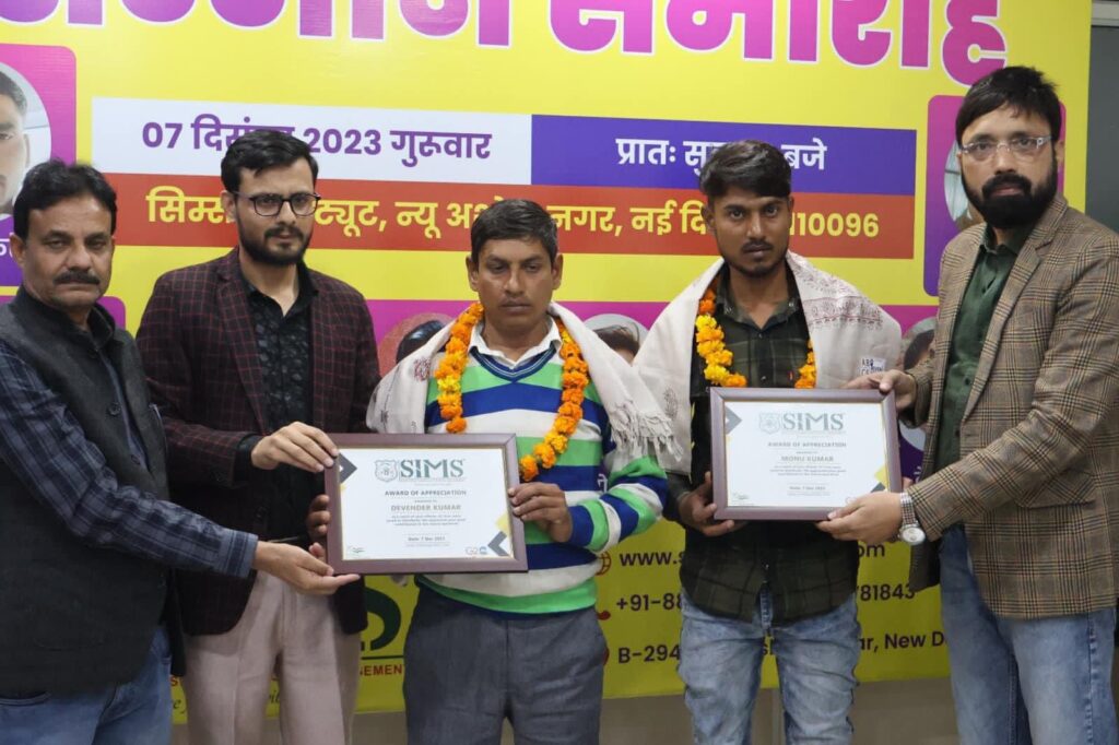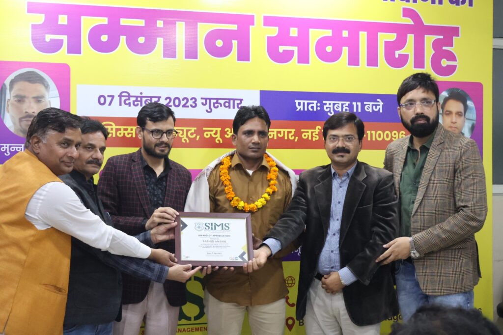 बिलाल हुसैन निदेशक सिम्स इंस्टिट्यूट ऑफ़ होटल मैनेजमेंट द्वारा न्यू अशोक नगर में उत्तरकाशी टनल में 41 मजदूरों को निकालने वाले बहादुर योद्धा को सम्मानित किया गया।