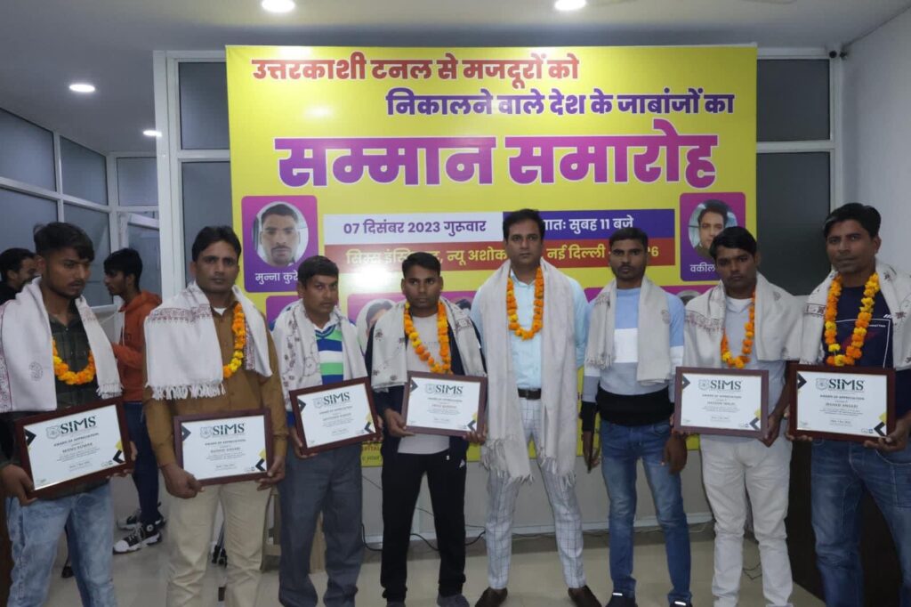 दिल्ली: सिम्स इंस्टिट्यूट ऑफ होटल मैनेजमेंट द्वारा अशोक विहार में उत्तरकाशी टनल में फंसे 41 मजदूरों को बाहर निकलने वाले उन तमाम योद्धा को सम्मानित किया गया। आप को बता दें सरकार द्वारा लगातार प्रयासों के बावजूद सभी सुरक्षित बाहर निकलने में 17 दिन लग गए थे।