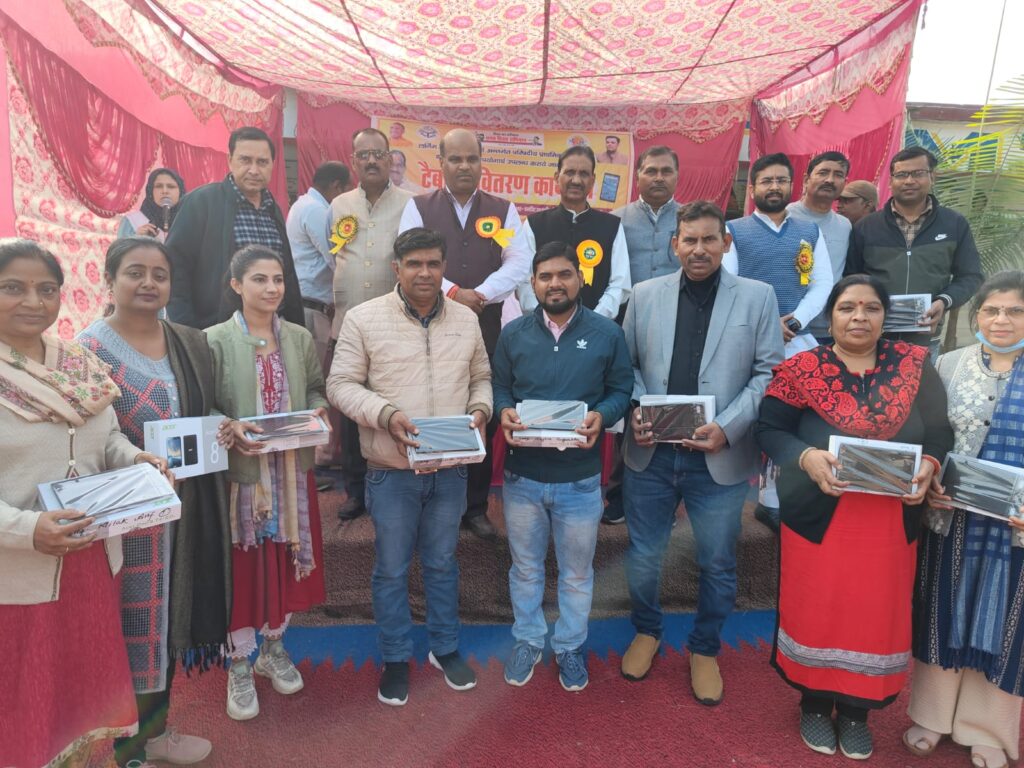 रामपुर:जिला पंचायत अध्यक्ष ख्यालीराम लोधी ने सैदनगर ब्लॉक के 106 प्राथमिक विद्यालय एवं 24 कंपोजिट विद्यालय के प्रधानाध्यापक / इंचार्ज प्रधानाध्यापक को कुल 222 टेबलेट वितरित किए।