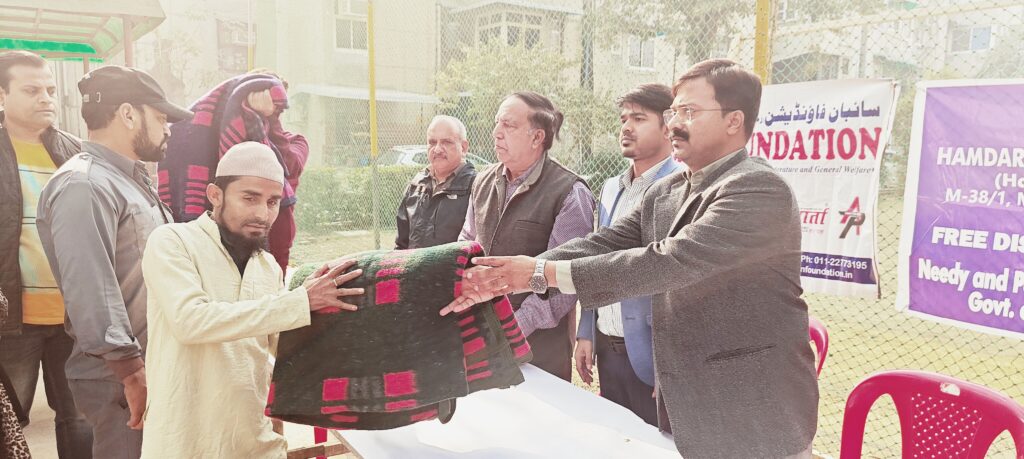दिल्ली: सायबान फाऊंडेशन और हमदर्द फाऊंडेशन के सहयोग से करिश्मा मेनेजमेंट कमिटी के सम्मानित सदस्यों की उपस्तिथि में मुख्य अतिथि श्री विवेक कुमार नरेश एसडीएम गांधी नगर, डॉ. मोहम्मद आदिल, सीएमओ डॉ. हेडगेवार हॉस्पिटल दिल्ली सरकार के हाथों बड़ी संख्या में जरूरतमंदों को कम्बल वितरित किया गया।