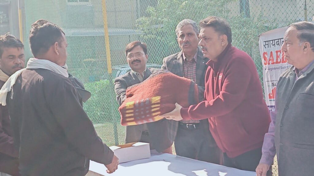 सायबान फाऊंडेशन और हमदर्द फाऊंडेशन के सहयोग से एसडीएम गांधी नगर विवेक कुमार नरेश और सीएमओ डॉक्टर हेडगेवाड़ डॉक्टर मोहम्मद आदिल के हाथों कम्बल वितरण।