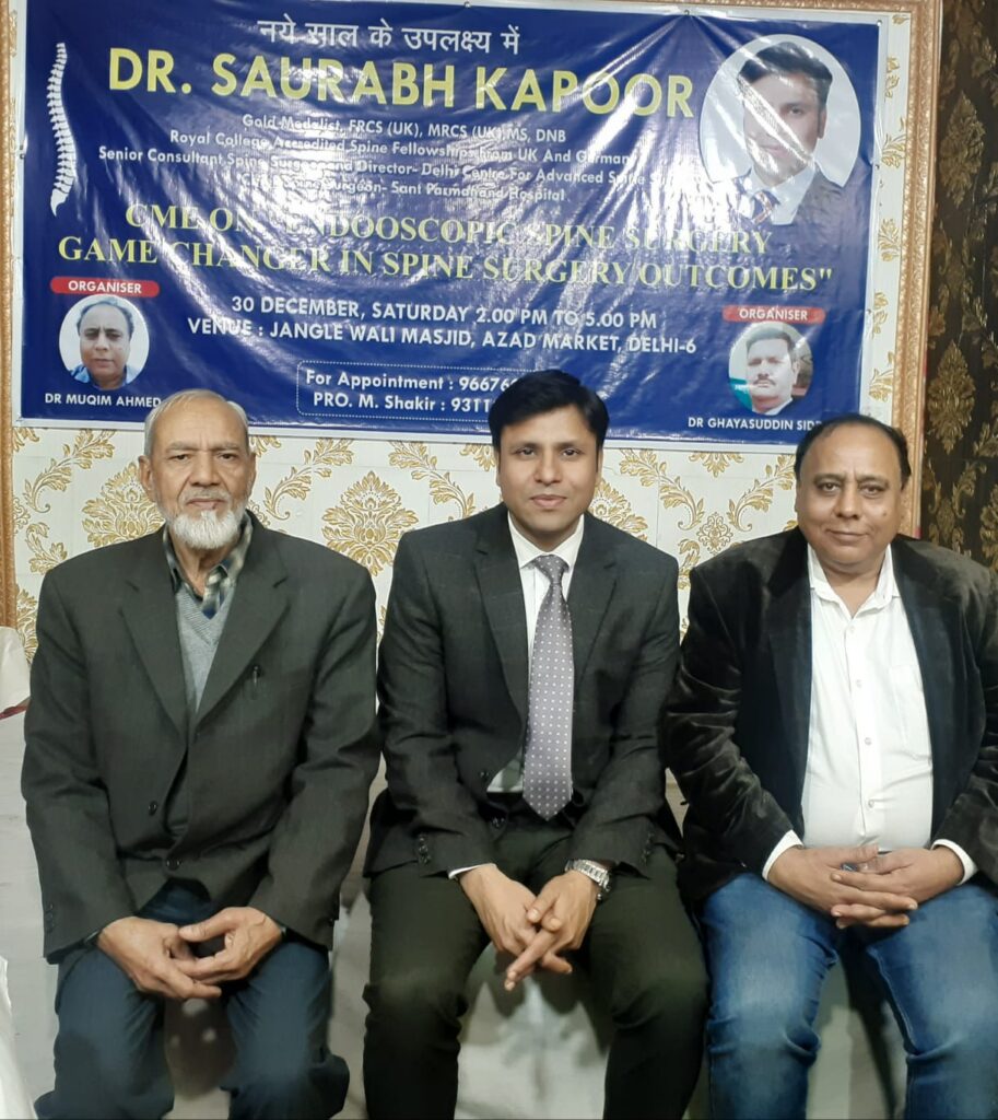 इस सम्बन्ध मे दिल्ली की आजाद मार्किट मे नव वर्ष के उपलक्ष पर सन्त परमानन्द अस्पताल के डाक्टर सौरभ कपूर सम्मान मे एक संगोष्ठी का आयोजन हुआ ! विशेष अतिथि डाक्टर सौरभ कपूर ने अपने संबोधन मे कहा कि आज के समय कोई भी रोग ला इलाज नही है । वैज्ञानिकता के आधार पर रीढ की हड्डी का उपचार दूरबीन द्वारा सम्भव हो गया है।