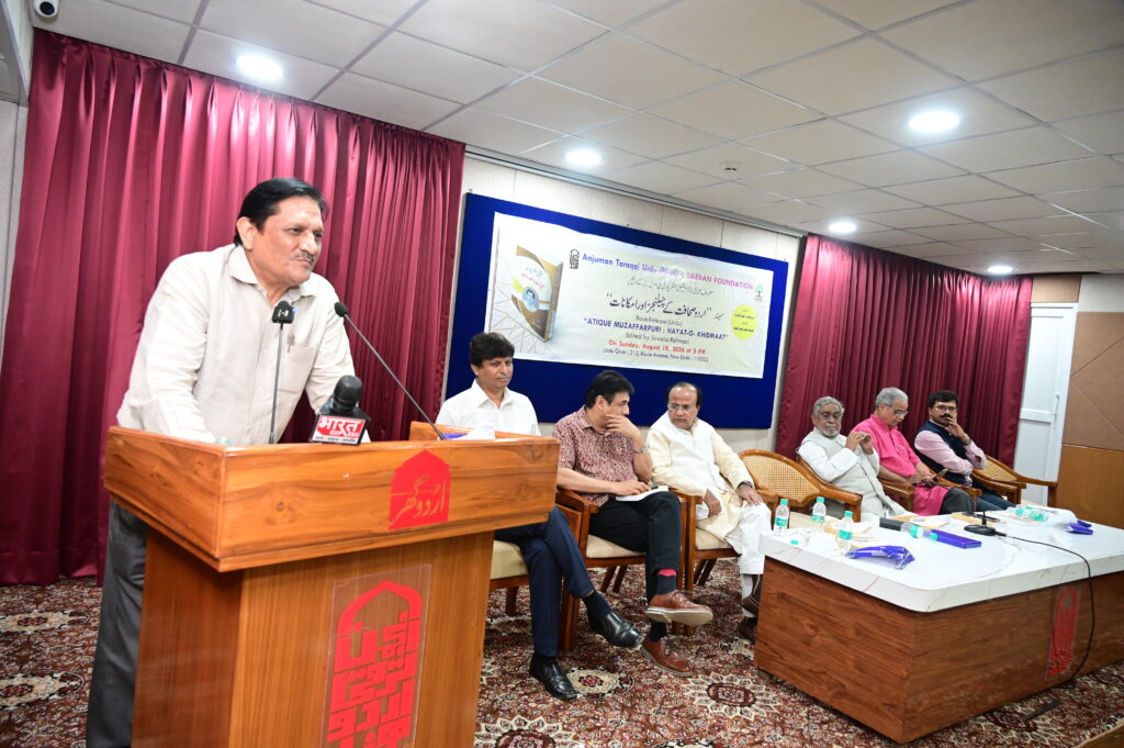 अंजुमन तरक्की उर्दू हिंद के महासचिव डॉ. अतहर फारूकी ने कहा कि आज उर्दू घर के सभागार में उर्दू साहित्य और पत्रकारिता से जुड़ी प्रमुख हस्तियों का जमावड़ा यह दर्शाता है कि मरहूम अतीक मुजफ्फरपुरी कितने नेक दिल और सिद्धांतवादी इंसान थे। वह एक करिश्माई व्यक्तित्व के मालिक थे। उन्होंने कहा कि ऐसा कम ही देखने को मिलता है कि ऑडिटोरियम के अंदर की सीटें तो दूर की बात है आज मैं देख रहा हूं कि जितने लोग बैठे हैं उससे ज्यादा लोग अंदर और बाहर खड़े हुए हैं। इससे यह भी पता चलता है कि आज भी साहित्यिक अभिरुचि वाले लोगों की कमी नहीं है। इस अवसर पर उन्होंने बताया कि आप को गर्व होगा कि उर्दू घर में आधुनिक तकनीक से सुसज्जित लाइब्रेरी देखने के काबिल है। इस अवसर पर हम यह कह सकते हैं कि यह ब्रिटिश लाइब्रेरी की शैली में नहीं है कम से कम उससे कम भी नहीं है।
