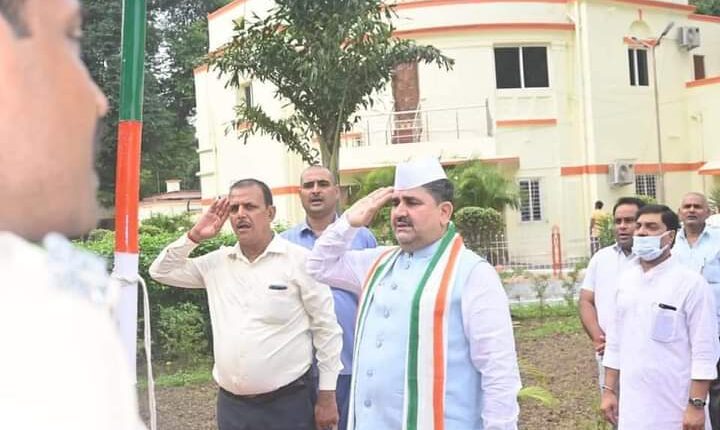 रामसूरत राय -मंत्री बिहार सरकार(राजस्व एवं भूमि सुधार) द्वारा ध्वजारोहण किया गया